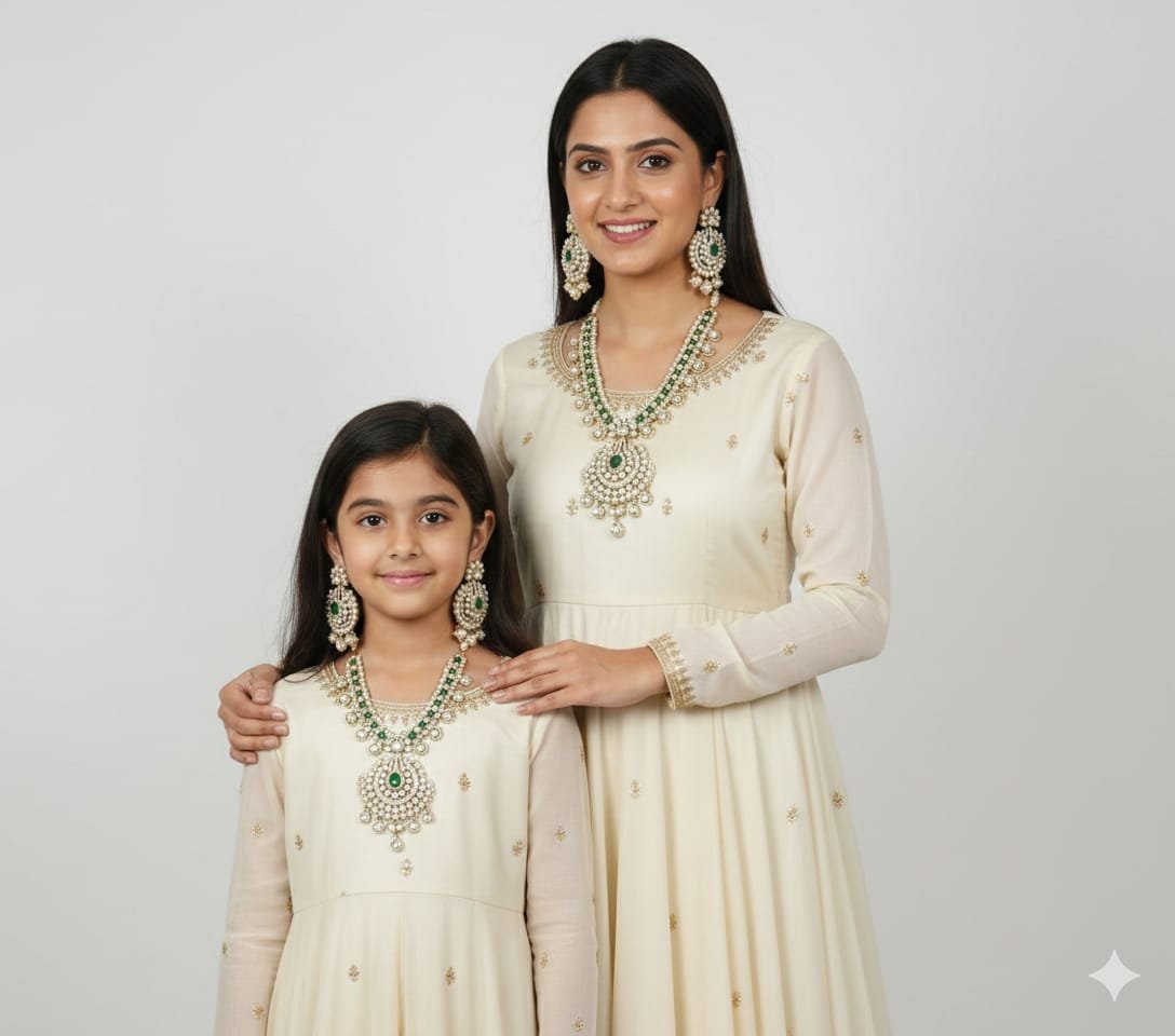 K - Pearl Emerald Rani Haar Necklace Set